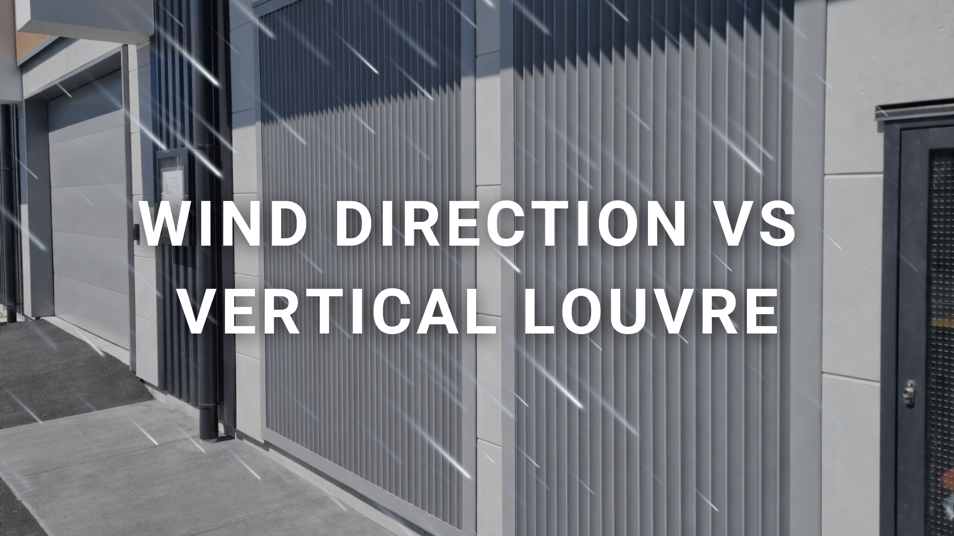 A vertical louvre has to stop wind-driven rain. In a storm, rain rarely falls straight down — it comes in sideways, and the droplets carry momentum. Even if the air changes direction, the water keeps travelling until something makes it stop. That’s why blade shape and spacing are so important. A well-designed louvre forces the air to turn sharply. The air can turn, but the water can’t, so the droplets hit the blades instead of passing through. The louvre then needs a clear path to drain that water safely to the exterior.